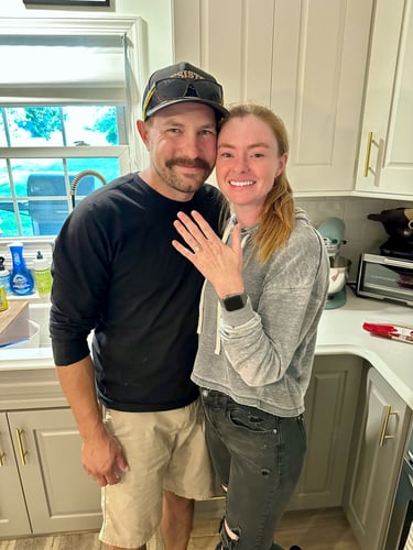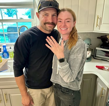 After a few years passed, Tony decided it was time to give the relationship a new title: fiancés! On a warm and sunny day at Somerset Farms in Lexington, Kentucky, Ali, Tony, and friends were having evening drinks by the pond, playing with all the dogs. As we walked towards the shop, in a private moment with the dogs, Tony proposed, and Ali blubbered, “Yes!” We have had so many memories at the farm it was truly the perfect spot!